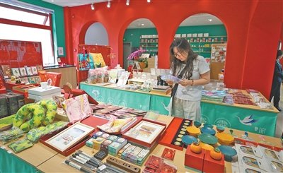 游客在北京地安門主題郵局選購文創(chuàng)產品。富田 攝(影像中國)